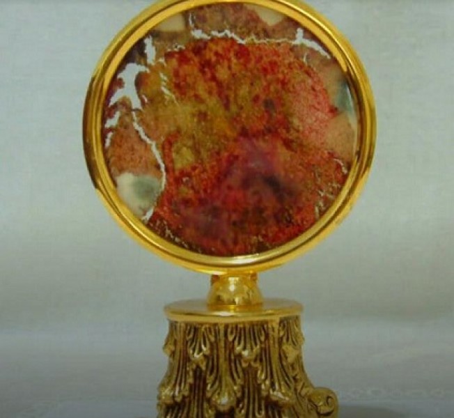 2) Quanto ao sangue, trata-se de genuíno sangue humano. Mais: o grupo sangüíneo ‘A’ que pertencem os vestígios de sangue, o sangue contido na carne e o sangue do cálice revelam tratar-se sempre do mesmo sangue grupo ‘AB’ (sangue comum aos Judeus). Este é também o grupo que o professor Pierluigi Baima Bollone, da universidade de Turim, identificou no Santo Sudário.