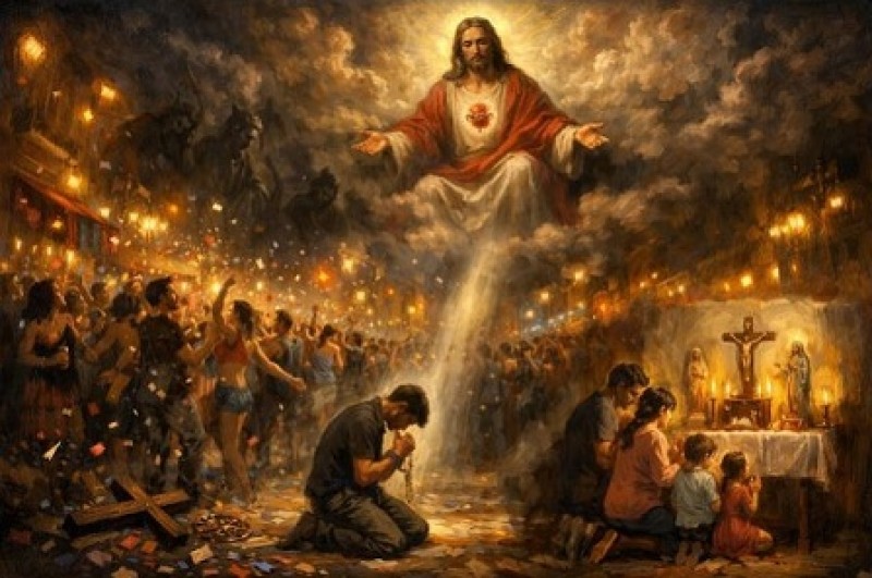 Seremos o pequeno rebanho fiel. Enquanto o mundo se entrega ao excesso, nós nos recolheremos. Enquanto a multidão grita, nós rezaremos. Enquanto tantos ofendem, nós repararemos. Oferecei esses dias em espírito de penitência. Confessai-vos. Fazei adoração. Rezai o terço em família. Ensinai vossos filhos que a verdadeira alegria não nasce do excesso, mas da graça.